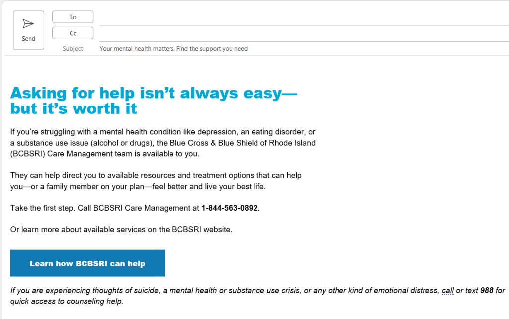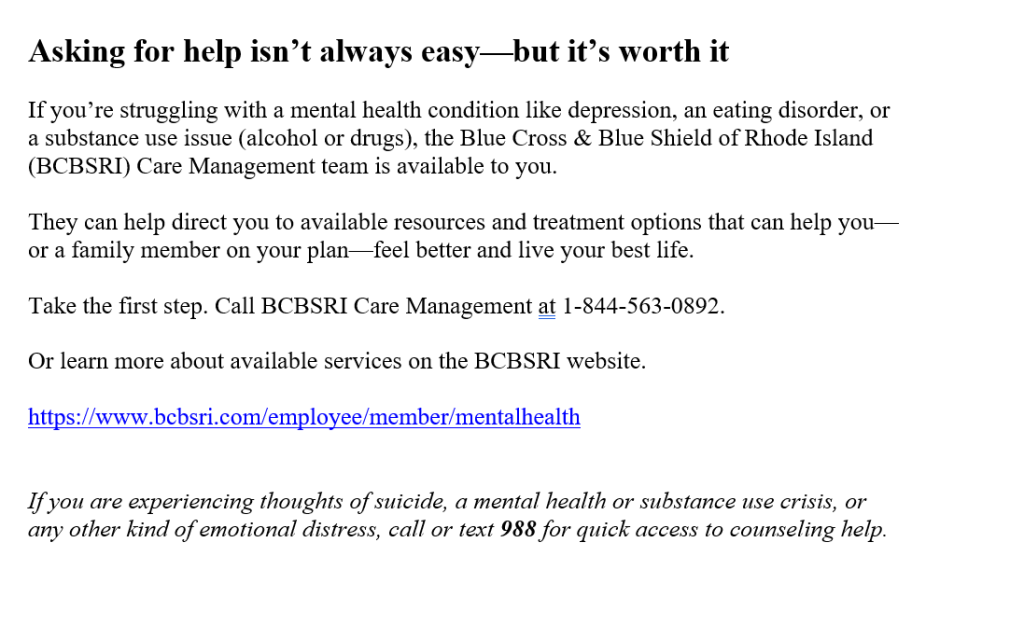 BCBSRI care managers can help your employees with mental health conditions, eating disorders, or substance use issues.